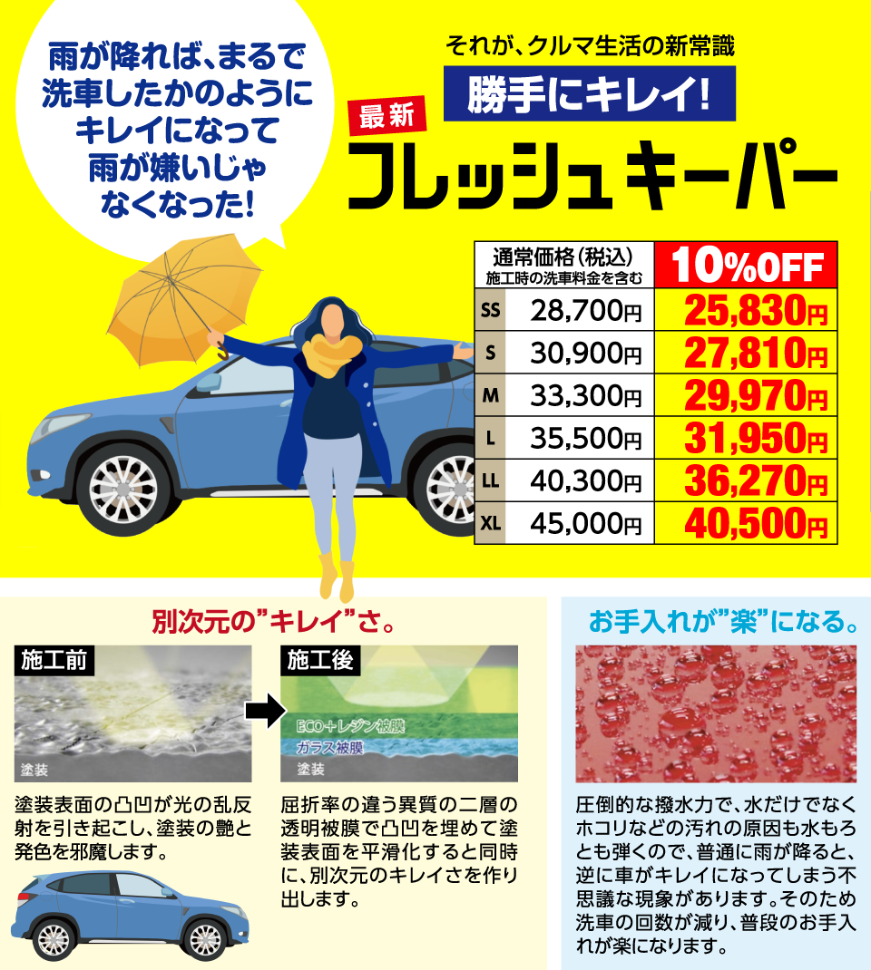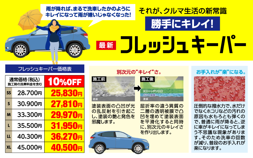 キーパーコーティングは、「キレイなまま、楽ができる」実用品といえますね。